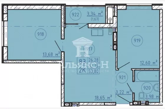 | Площадь, кв.м. | 53.8 |